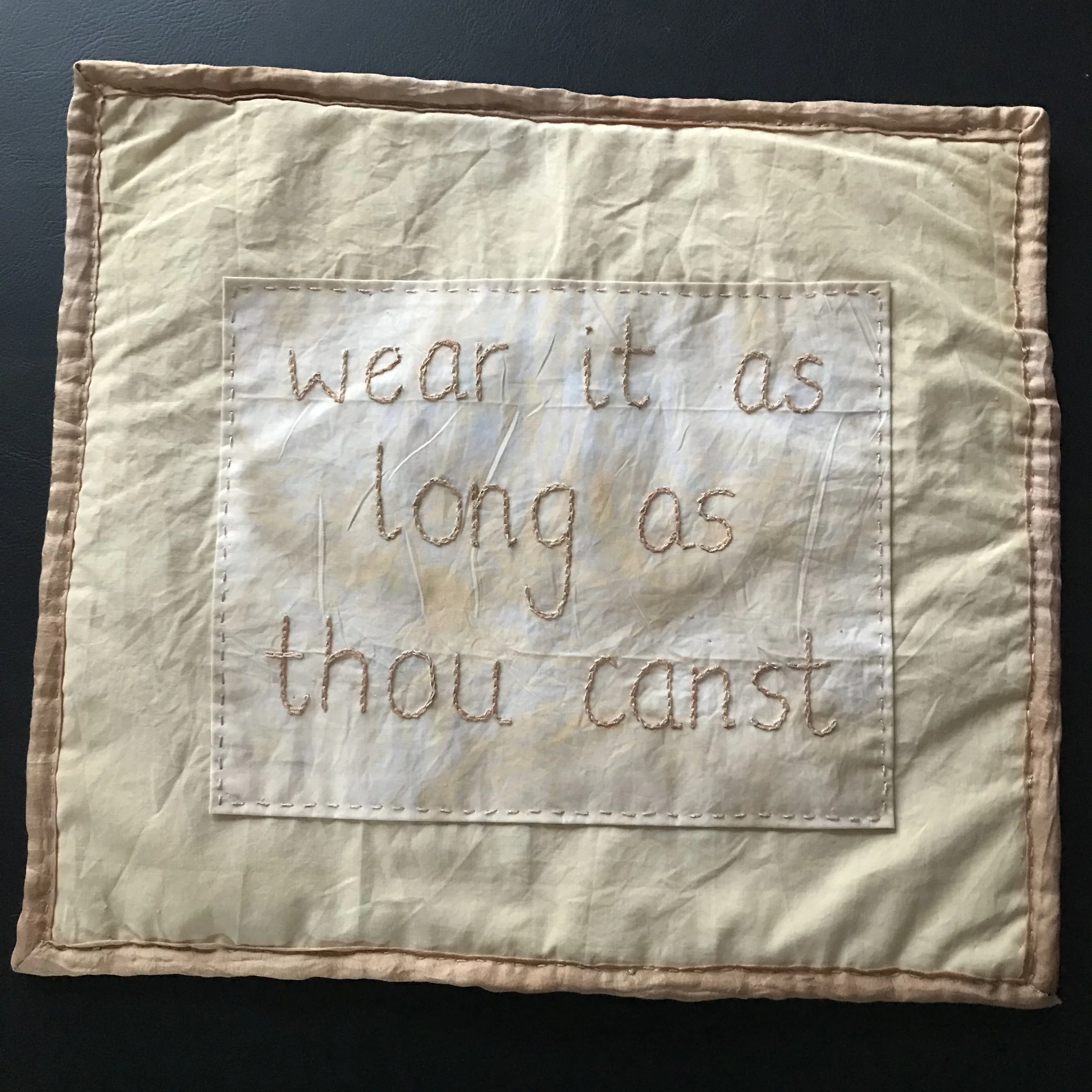 "Wear it as long as thou cans't" (front). My contribution to the Loving Earth Project.